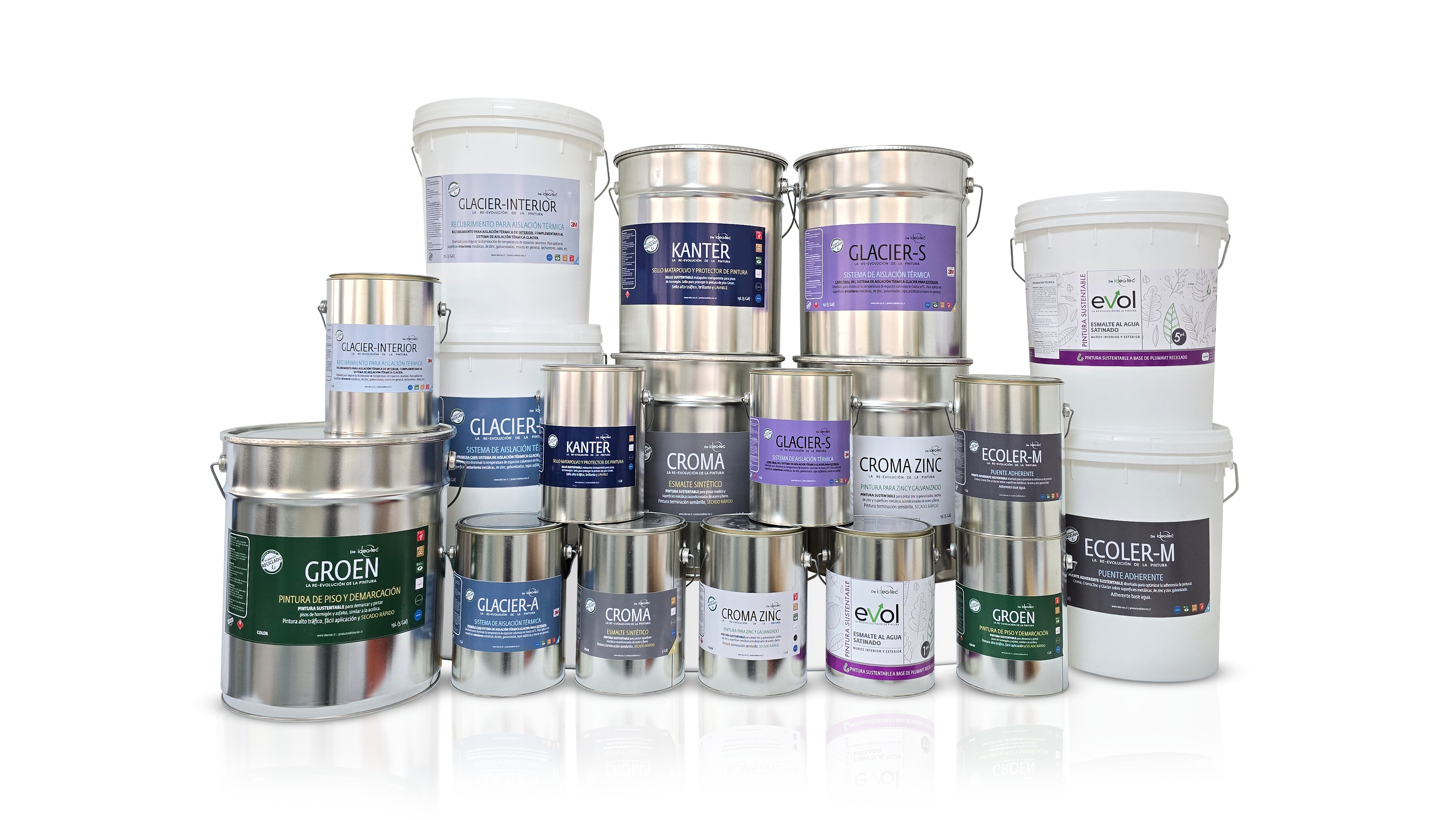 Descubre nuestras pinturas sustentables Évol, Groen, Croma, Glacier y más! Son pinturas para los deck y muros de salas de clases y oficinas, pasamanos y estructuras metálicas superficies metálicas, techos y garitas de zinc y galvanizados, pisos y canchas deportivas de hormigón y asfalto, pintura para disminuir el calor de espacios calurosos, entre otras. Se pueden usar tanto en interior como exterior.